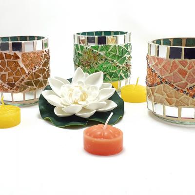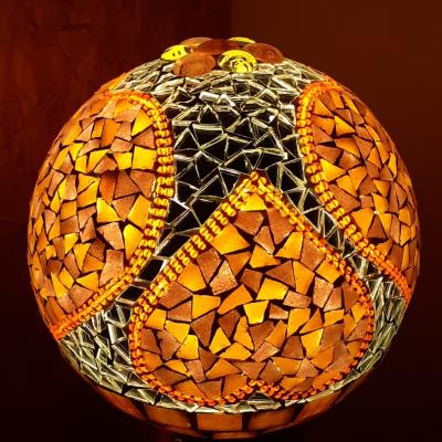 Medidas: Las esferas de vidrio mosaiqueadas son de 8 x 15 cm, 12 x 25 cm, 15 x 30 cm, en orden de altura y diámetro. Los demás apliques o Spot, en las medidas requeridas por el cliente.